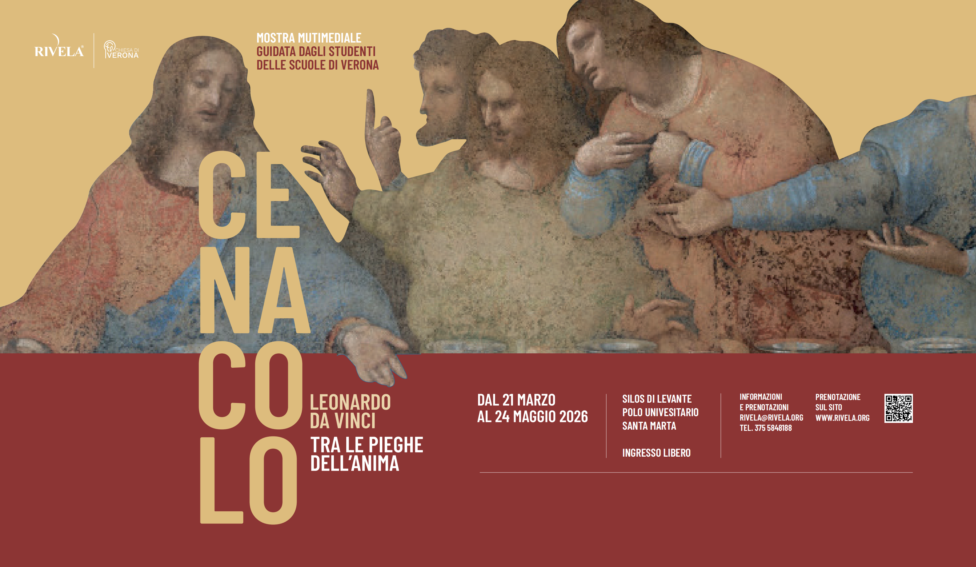 Dopo il successo del ciclo dedicato a Dante Alighieri (2022–2024) e della mostra per il cinquecentenario di Fra’ Giovanni da Verona, presentiamo una nuova edizione ampliata di un progetto già apprezzato dal pubblico: la mostra multimediale dedicata a Leonardo da Vinci e al Cenacolo, realizzata con la storica dell’arte sr. Maria Gloria Riva.